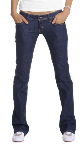 Jeans pour femme modèle évasé au niveau des jambe. Ce jeans bootcut est constitué de 95% de coton et de 5% d'élasthanne. Lavage en machine à 30°. Mesures du jeans pour femme (mesures effectuées sur un 38/M) : Entrejambe env. 84cm, longueur entrejambe-taille env. 16cm, largeur au niveau des chevilles env. 21cm, largeur au niveau des cuisses env. 25cm. Ces pantalons pour femme sont disponibles dans les tailles 34/xs, 36/s, 38/m, 40/l, 42/xl. Ce jeans pour femme bootcut est de taille standard.