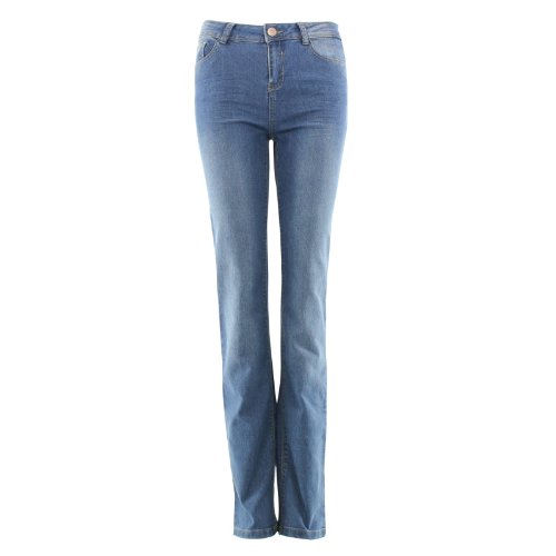 Jean droit à taille haute. Coupe 5 poches finition rivets métalliques, fermeture