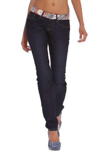Desigual Pintura Waist Dark blue Jeans Slim Femme 98% Coton - 2% Elasthanne (Stretch)